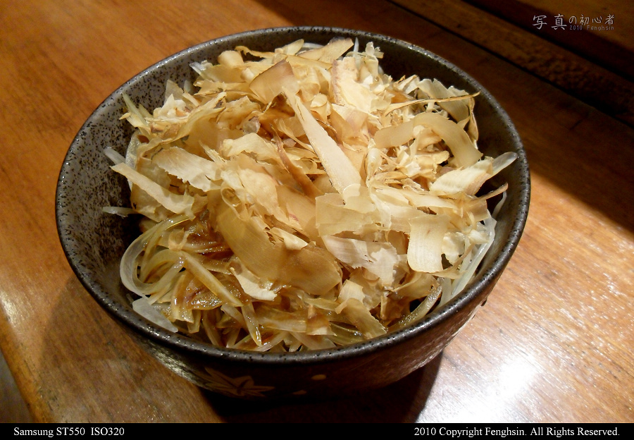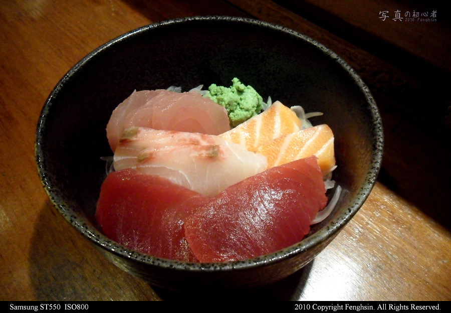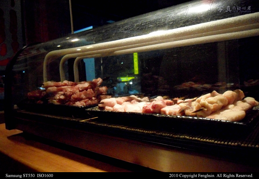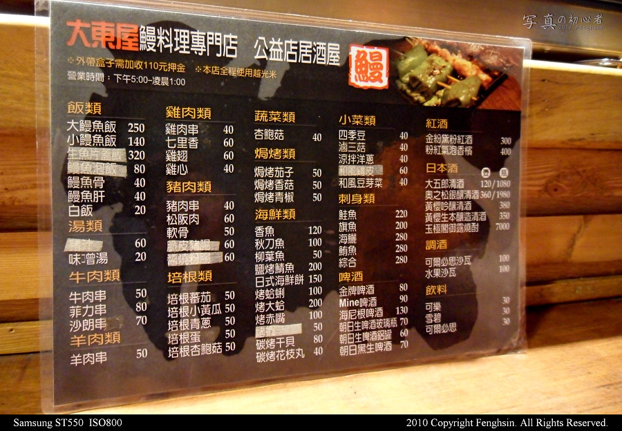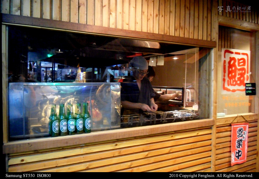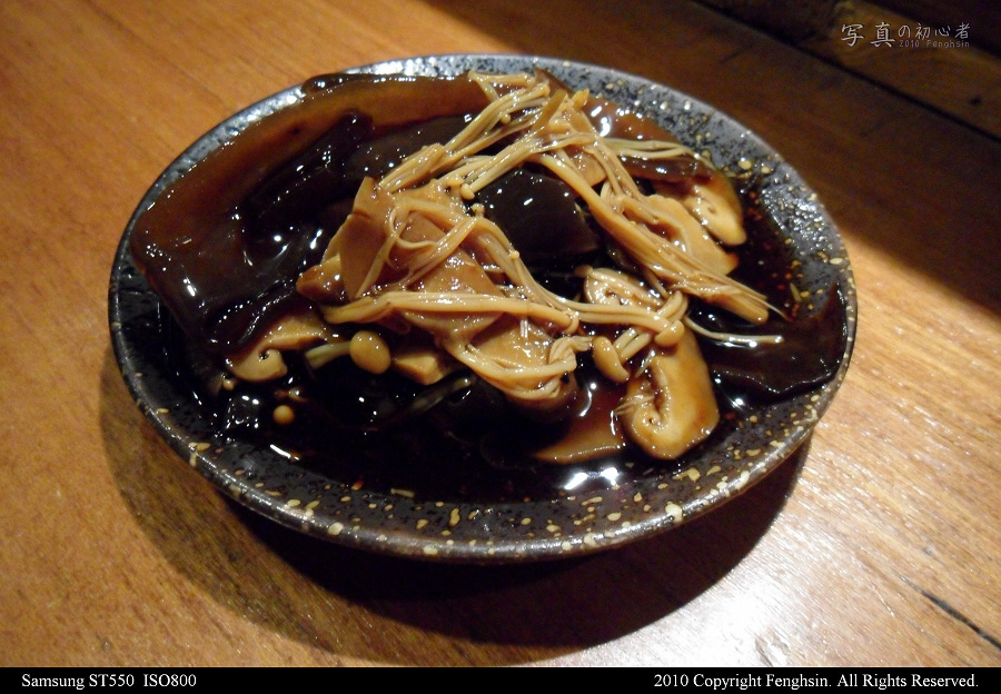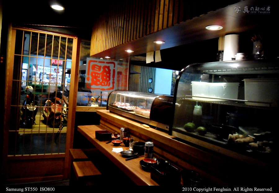 很不巧,這天主力隨身機GF1碰巧沒帶在身上,店內燈光真是超級昏暗,果然如菜單上寫的...居酒屋的感覺,只用SAMSUNG ST550真是難拍...畫質也大大的低落...T_T