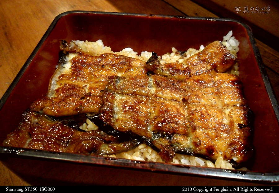 終於,等候多時的鰻魚飯出現了...看起來烤得油滋滋、閃亮亮的...令人感動、垂涎的樣子...__